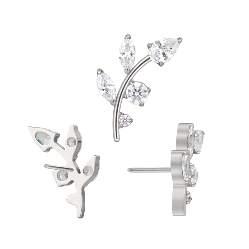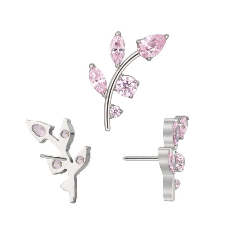 Titanium Push In CNC Set CZ Vine Threadless Top