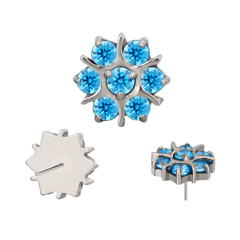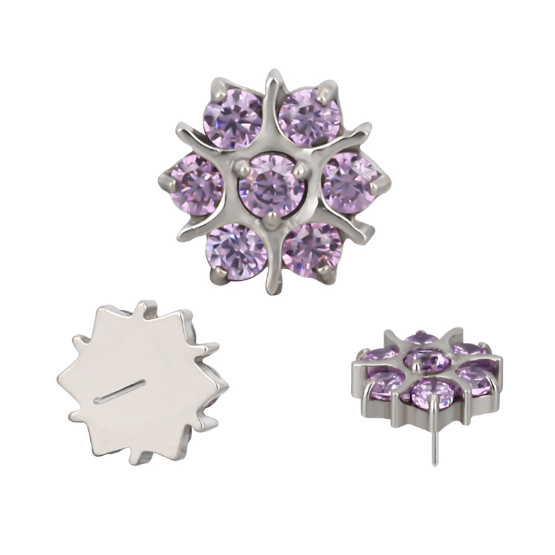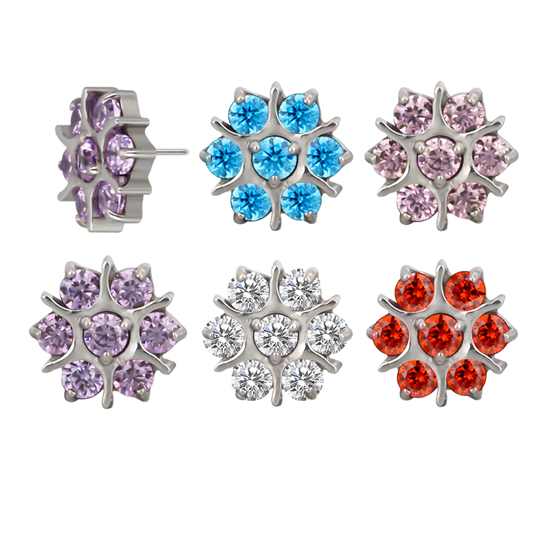 Titanium Push In 7 CZ Paved Flower Threadless Top