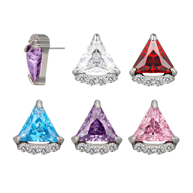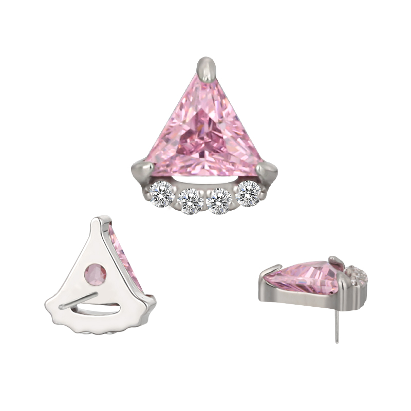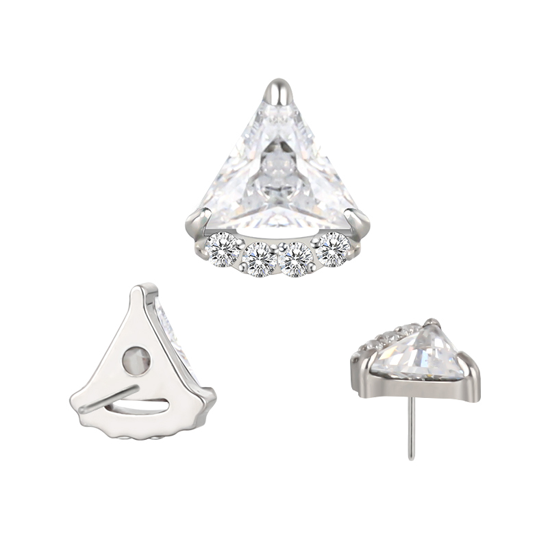 Titanium Push In Bezel Set Triangle CZ and 4 CZ Threadless Top