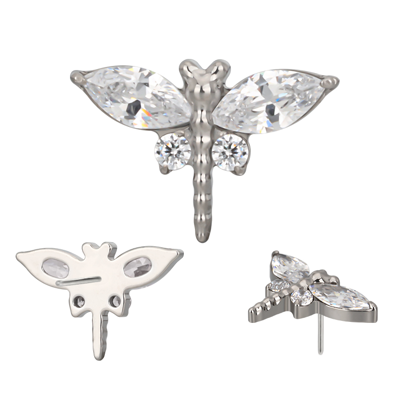 Titanium Push In CNC Set CZ Dragonfly Threadless Top