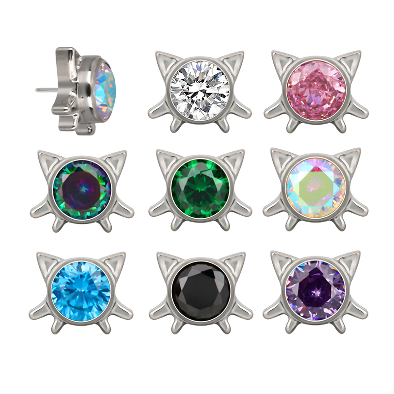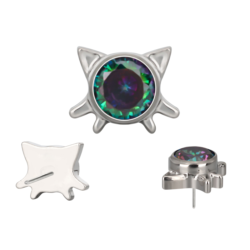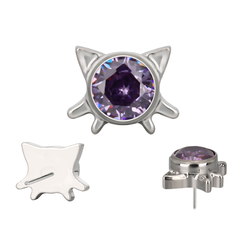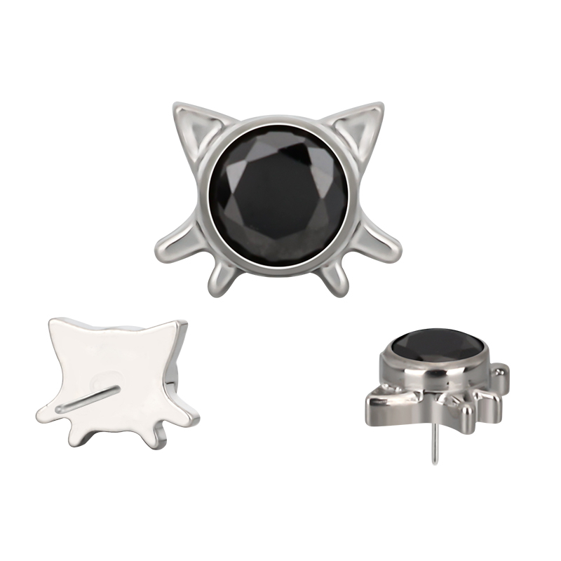 Titanium Push In CNC Set Cat With CZ Center Threadless Top