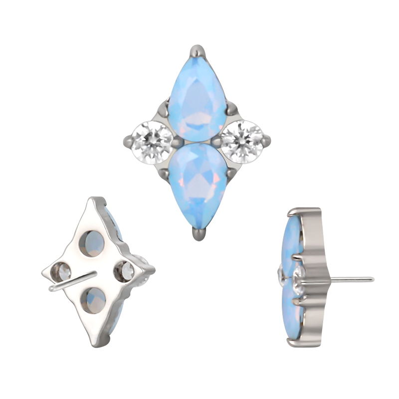 Titanium Push In Bezel Set 2 Pear Nature Stone and 2 CZ Threadless Top