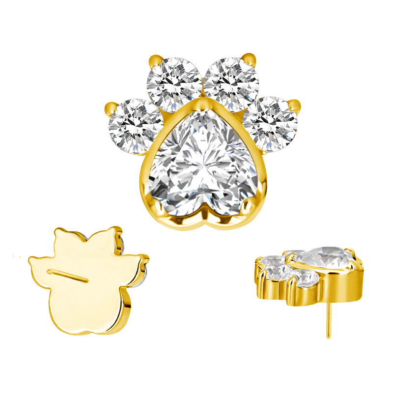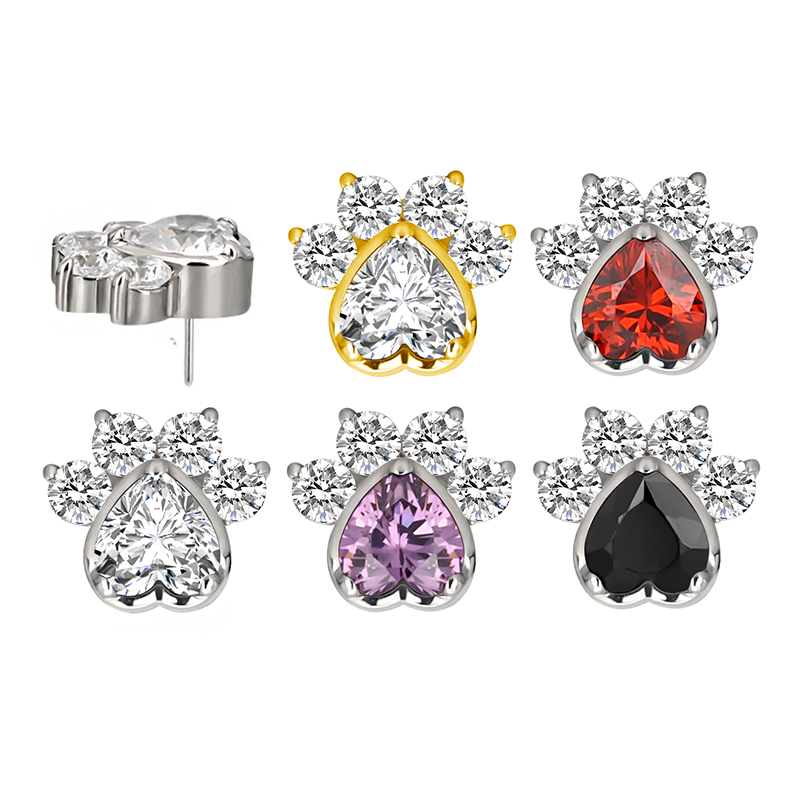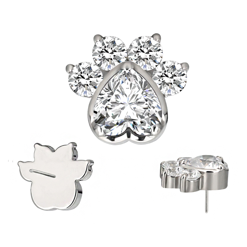 Titanium Push In CNC Set Cat Claw With Heart CZ Center Threadless Top
