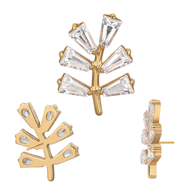 Titanium Push In Tree With Rectangle CZ Leaf Threadless Top