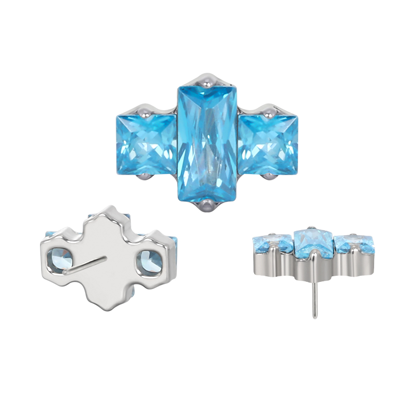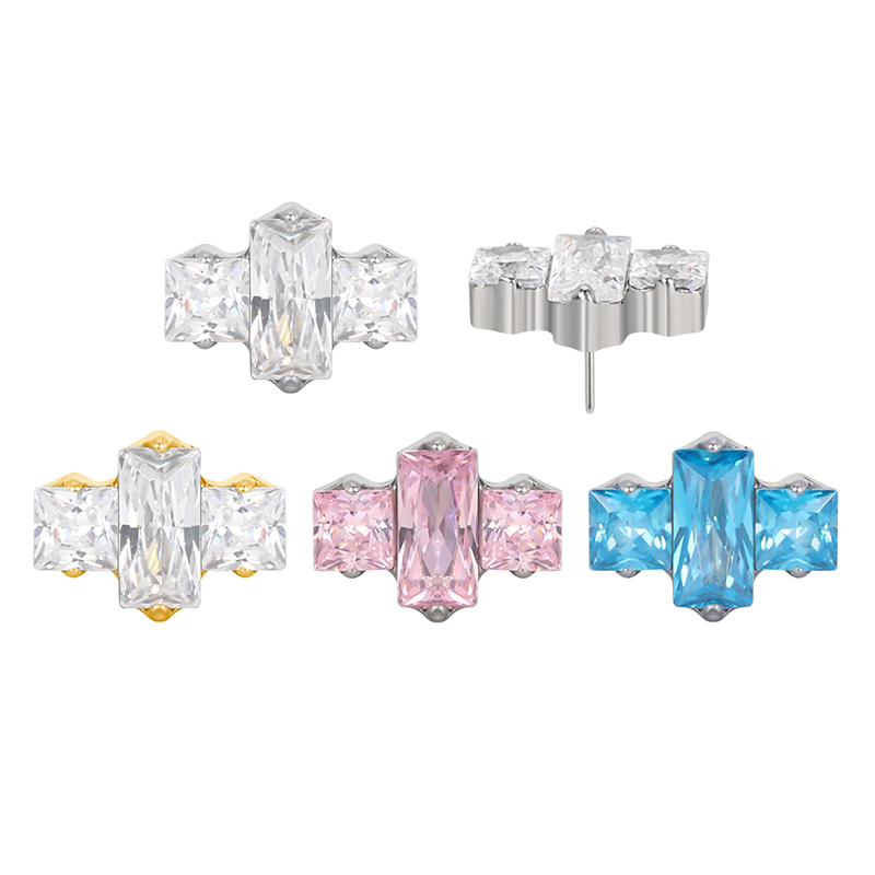 Titanium Push In 2 Square CZ With Rectangle CZ Center Threadless Top