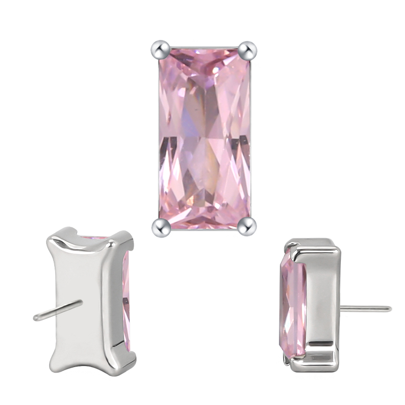 Titanium Push In CNC Set Rectangle CZ Threadless Top