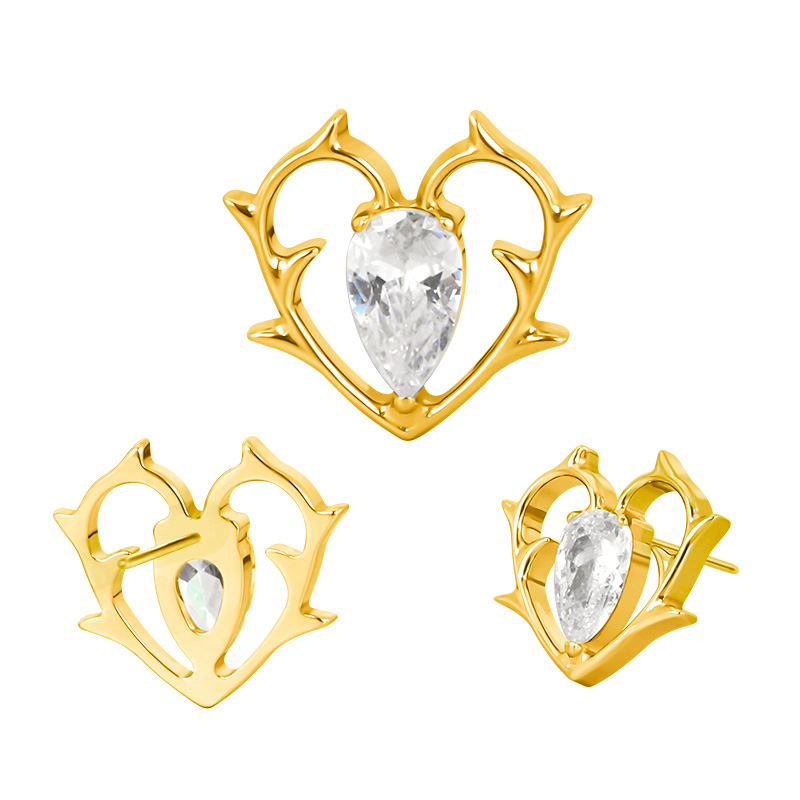 Titanium Push In Thorny Heart With Pear CZ Center Threadless Top