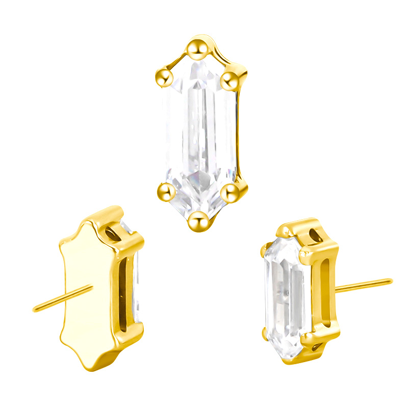 Titanium Push In Prong Set Hexagon CZ Center Threadless Top