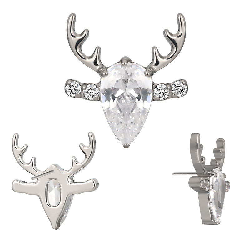 Titanium Push In CNC Set Moosehead With Pear CZ Center Threadless Top