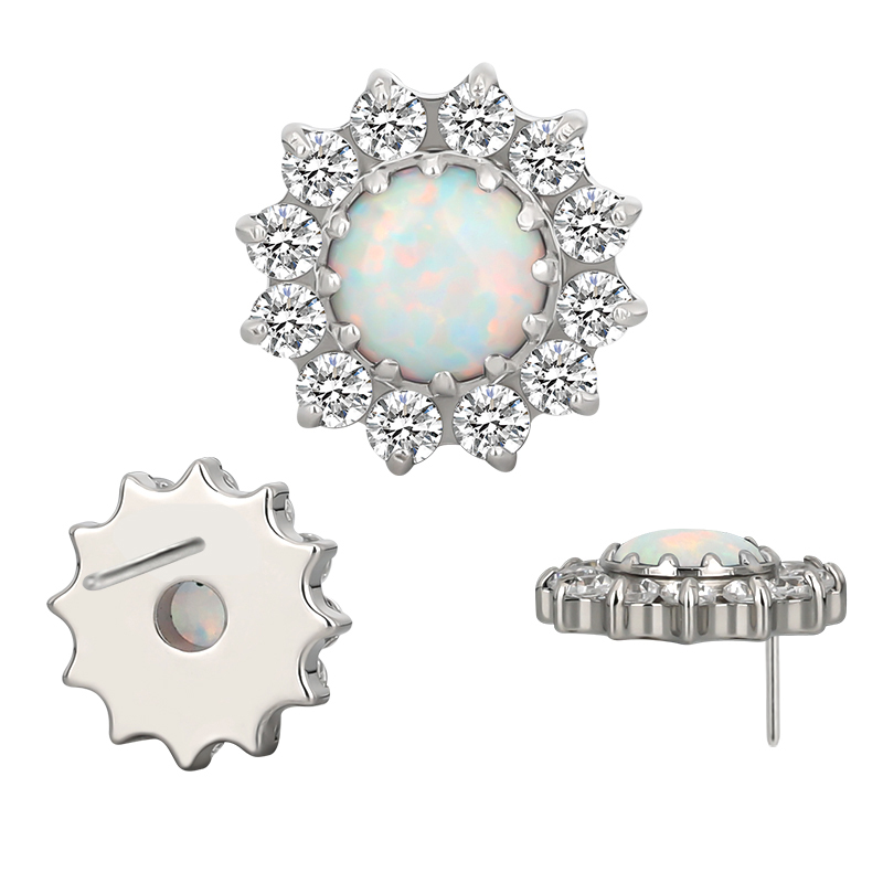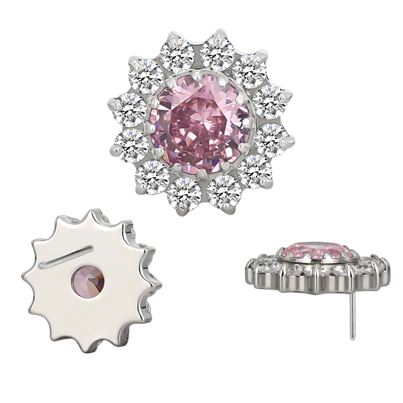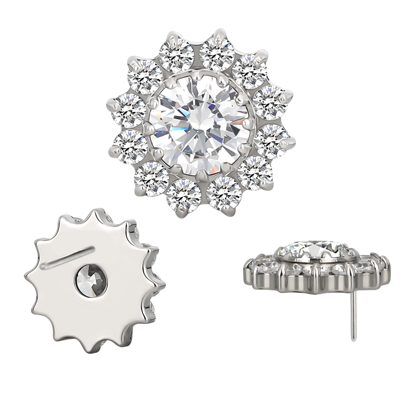 Titanium Push In Bezel Set CZ Flower Threadless Top
