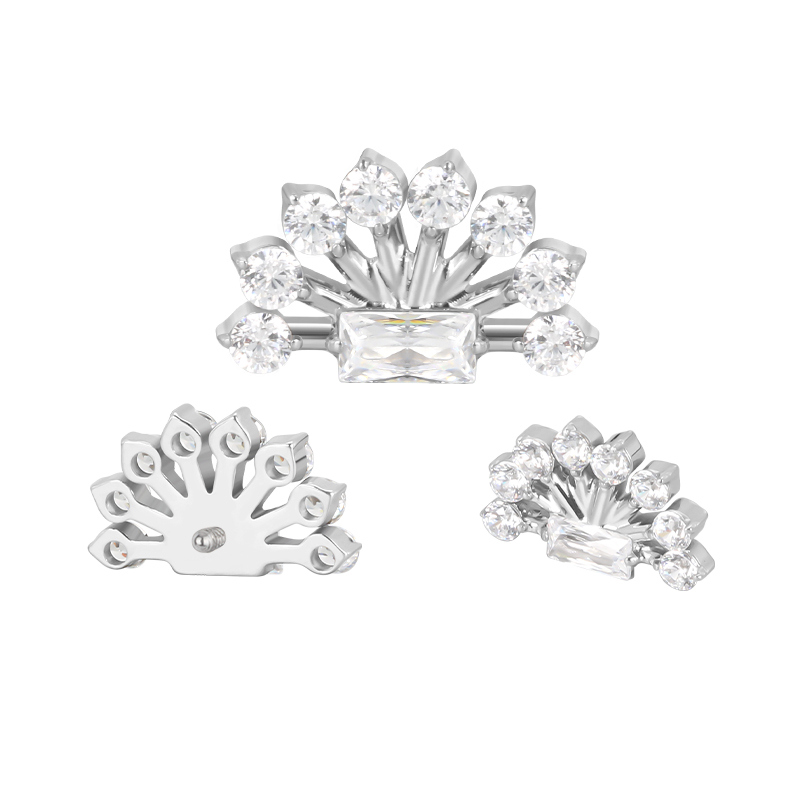 Titanium CZ Flower With Rectangle CZ Center Internally Threaded Top