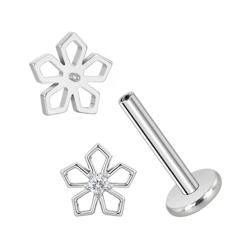 Titanium Pentagonal Flower With CZ Center Internally Threaded Top