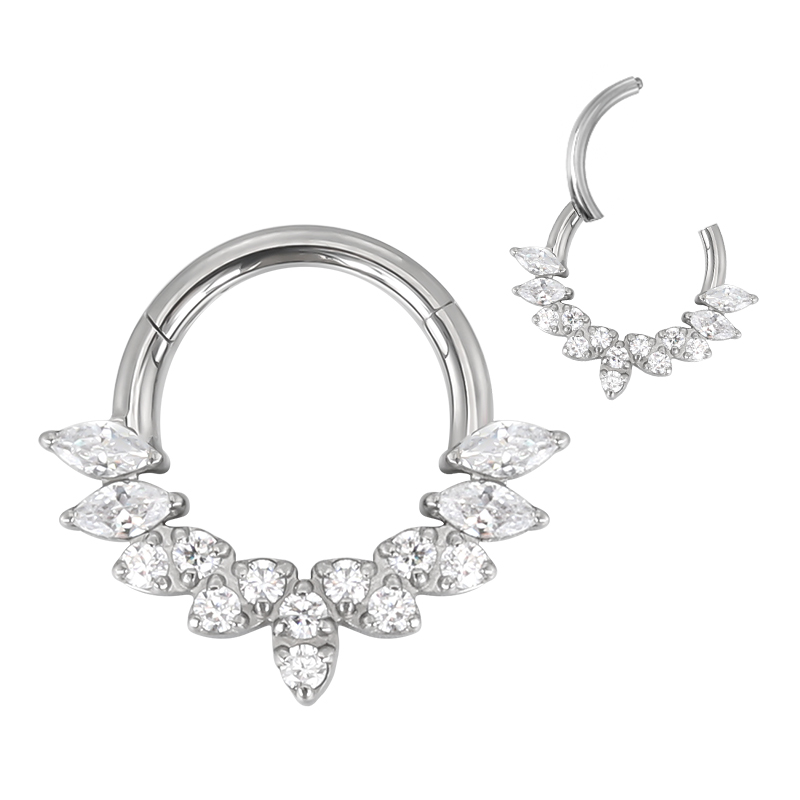 Titanium 4 Marquise CZ and Round CZ Paved Faced Hinged Segment Ring