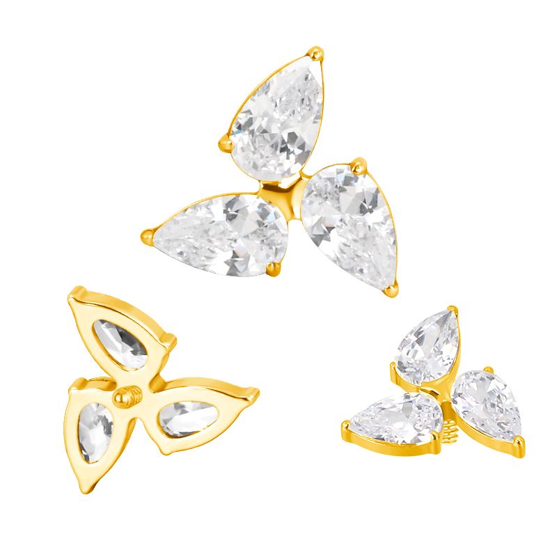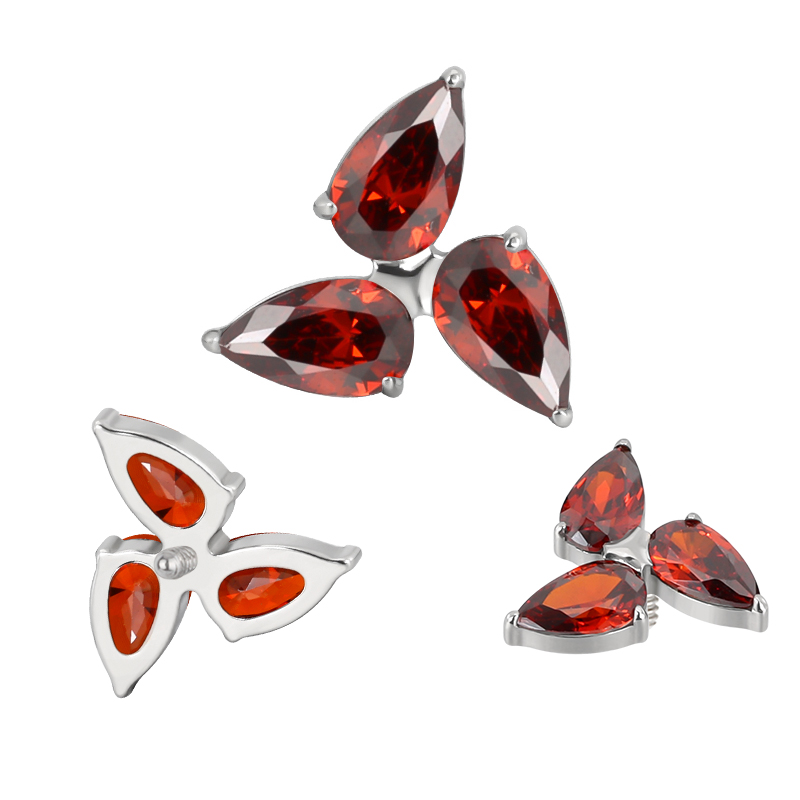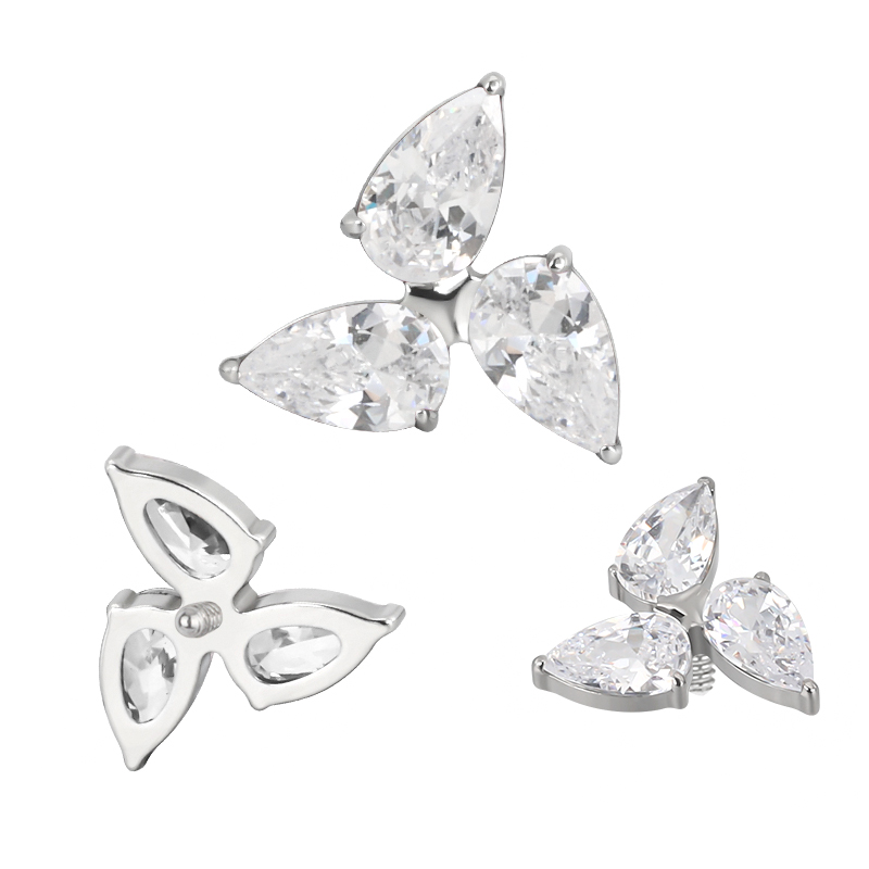 Titanium 3 Pear CZ Shuriken Interanlly Threaded Top