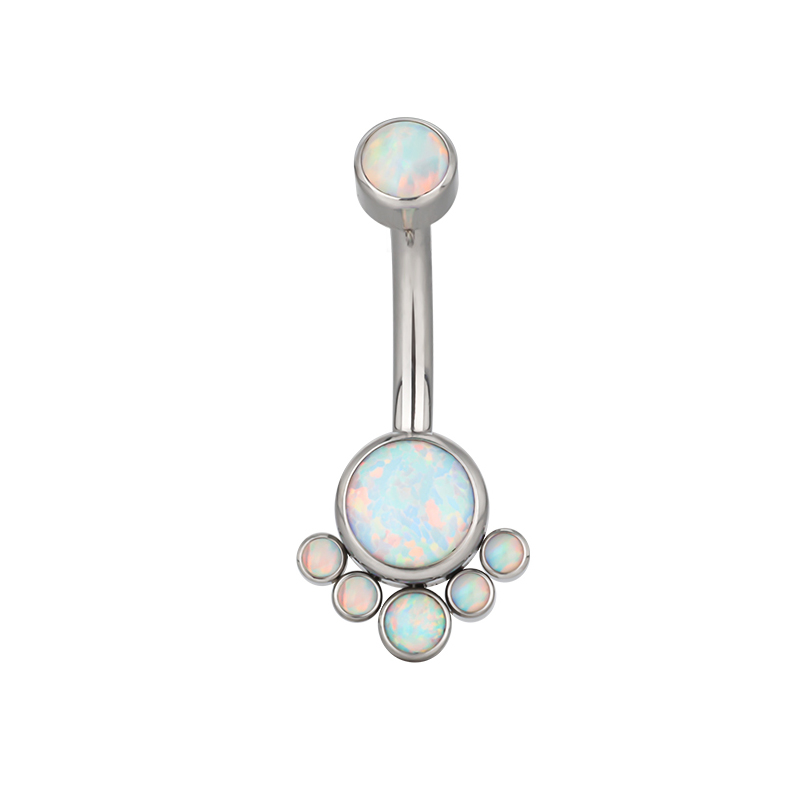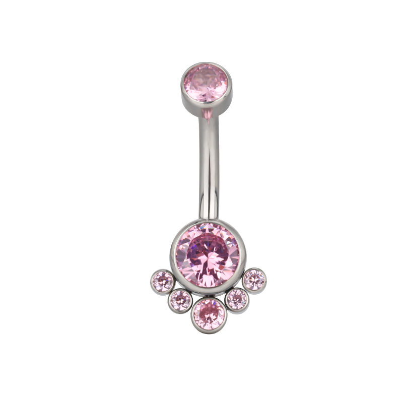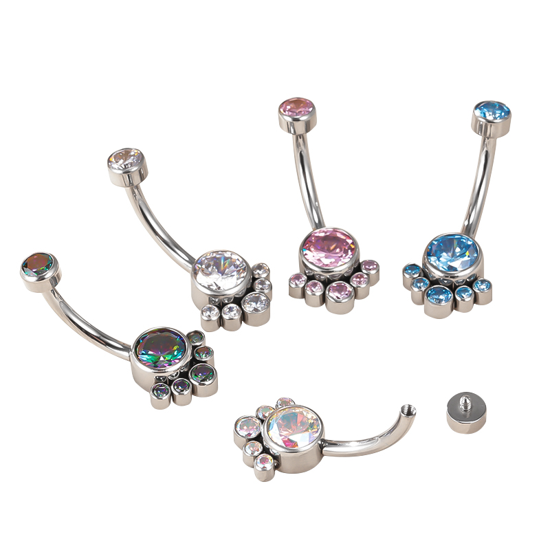 Bezel Set 6-CZ Stone Clearuster Internally Threaded Navel Curves