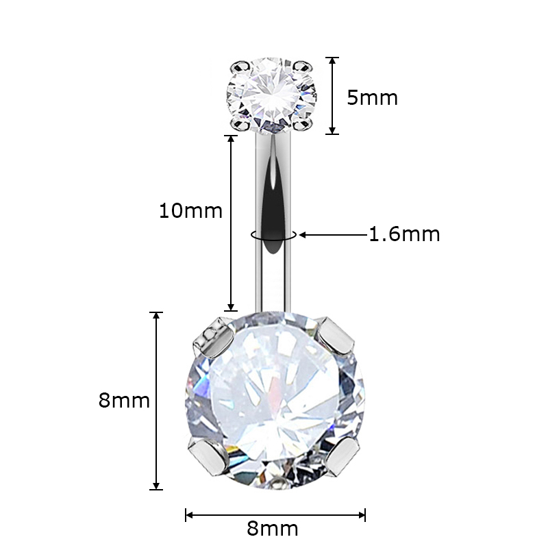 ASTM F-136 Double Round CZ Prong Set Belly Button Navel Rings