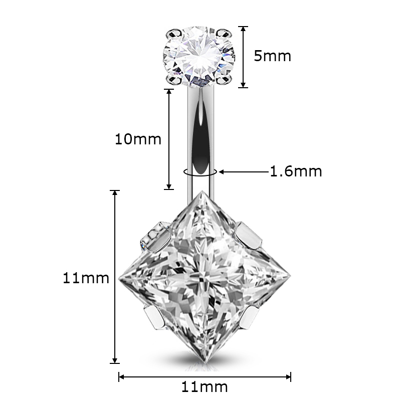 ASTM F-136 Double Square CZ Prong Set Belly Button Navel Rings