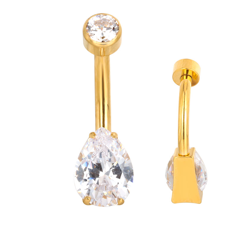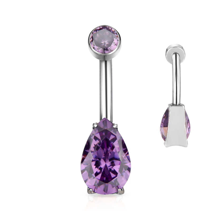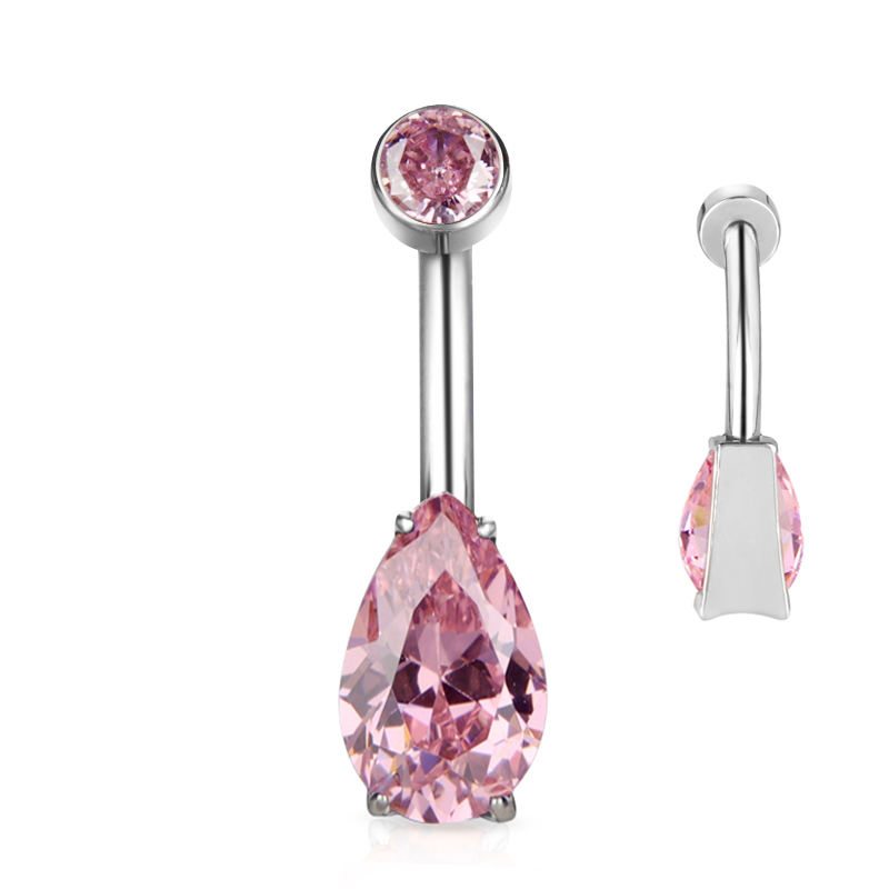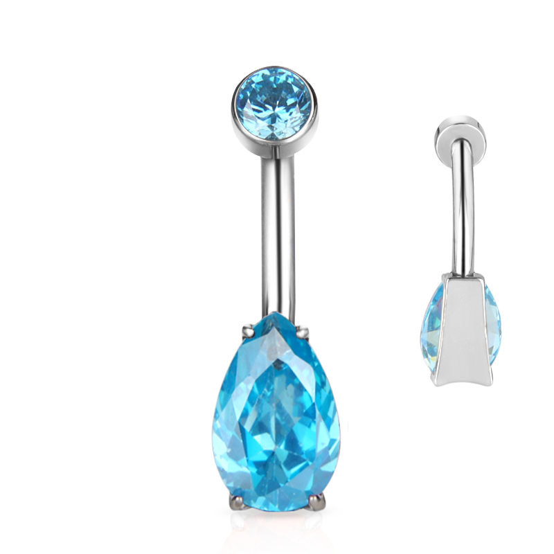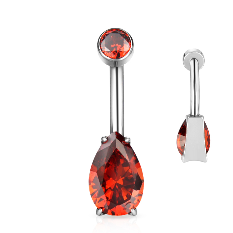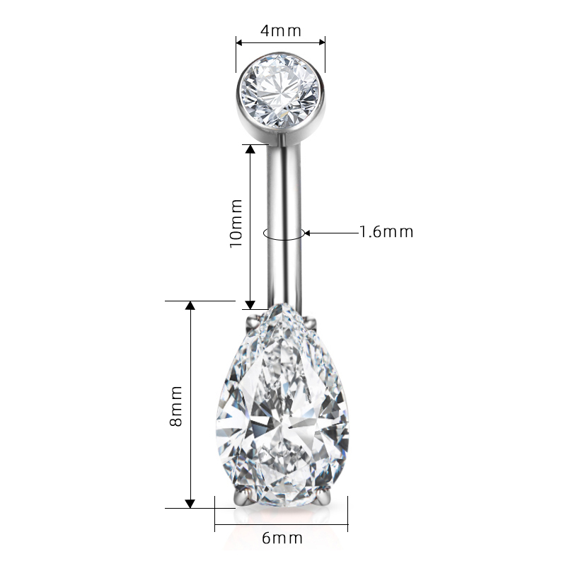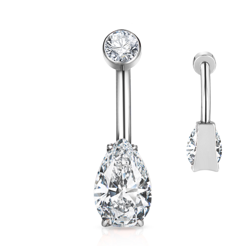 Titanium Bezel Set CZ Top and Pear CZ (6x8mm) Stone Back Belly Button Rings