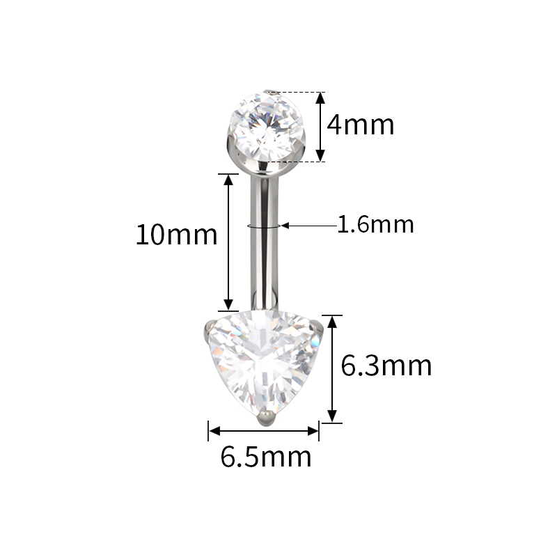Titanium Prong Set Triangle Cut Zircon Belly Buttone Ring