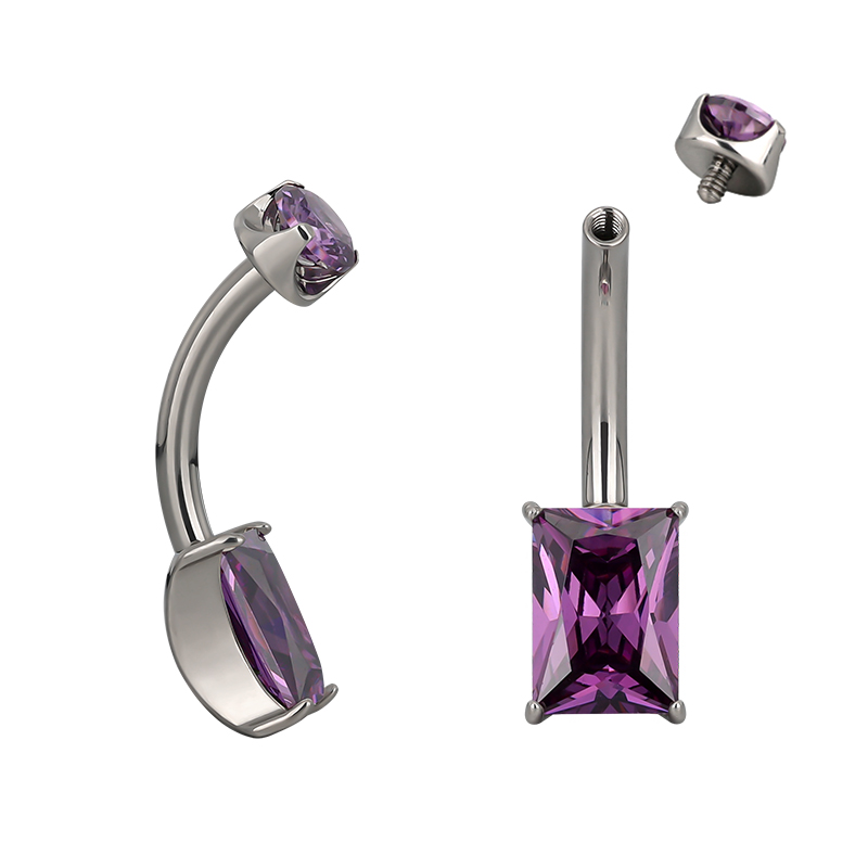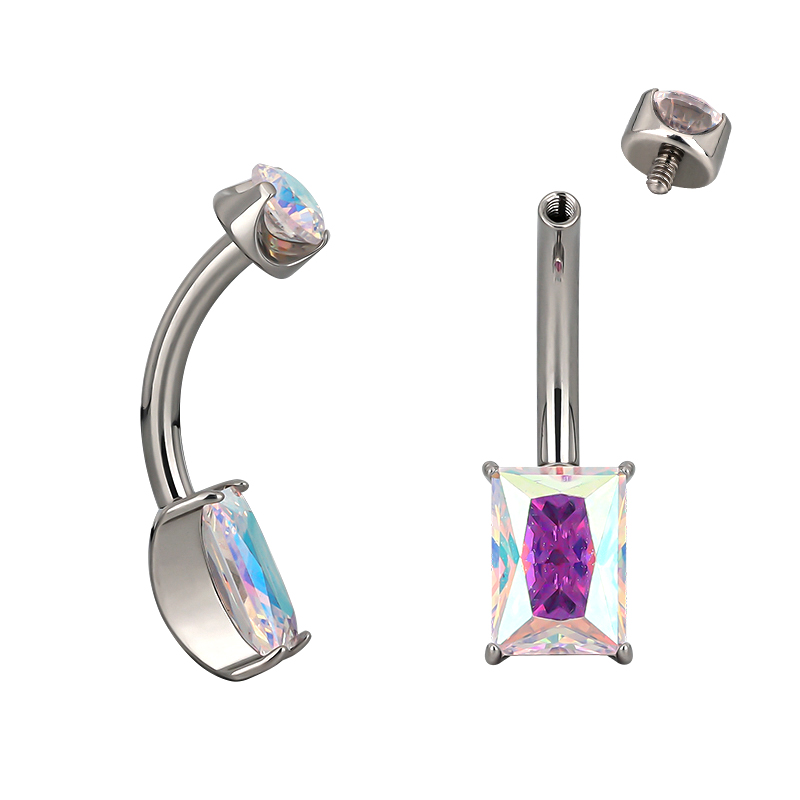 Titanium Prong Set Rectangle Cut Zircon Belly Buttone Ring