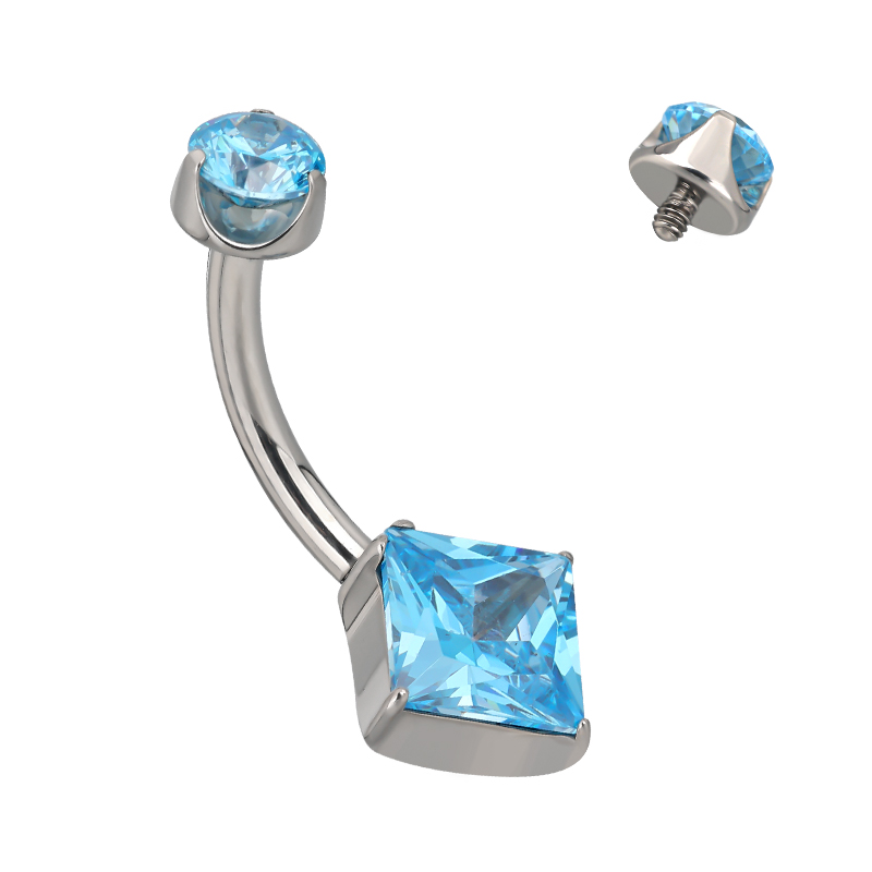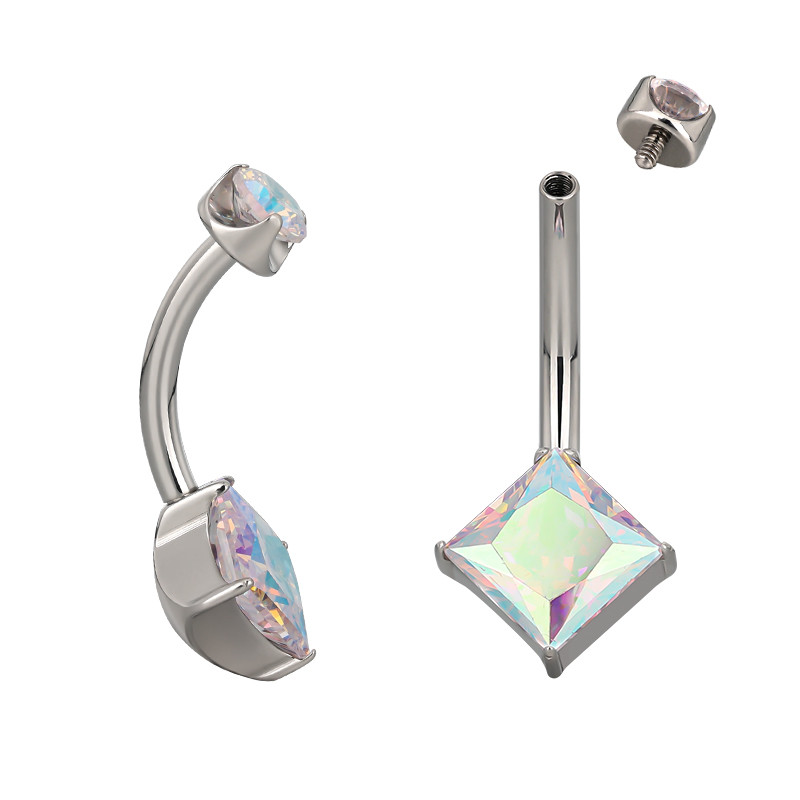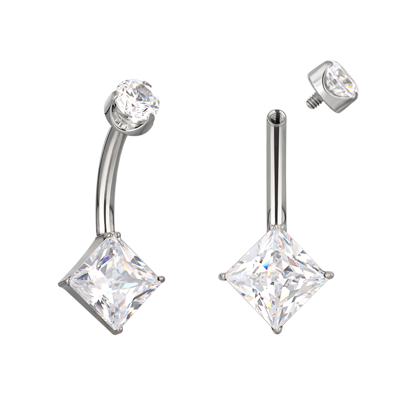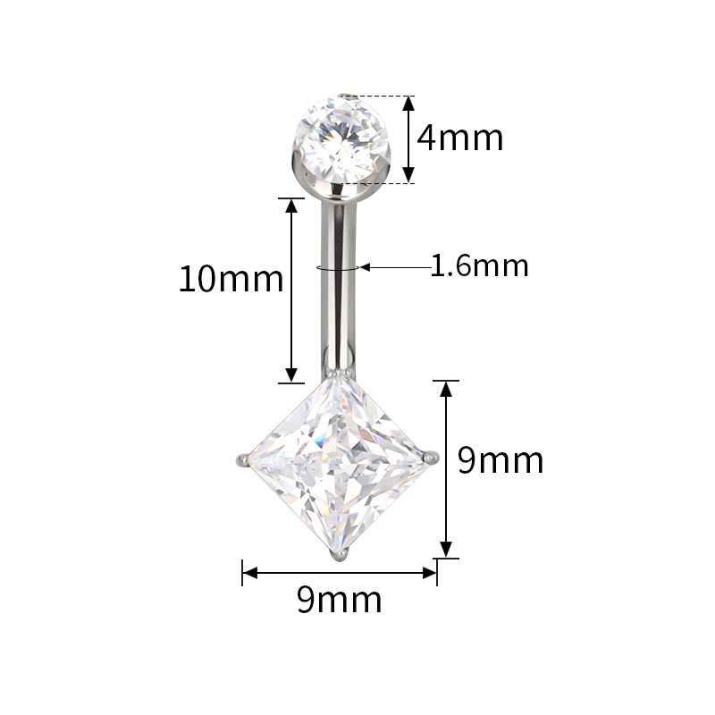 Titanium Prong Set Square Zircon Belly Buttone Ring
