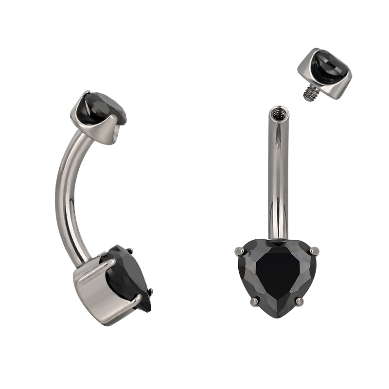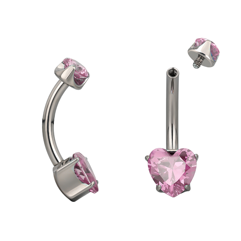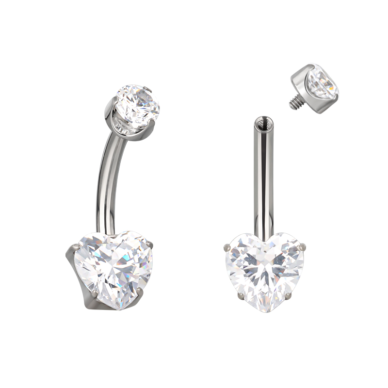 Titanium Prong Set Heart Zircon Belly Buttone Ring