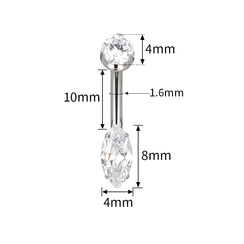 Titanium Prong Set Marquise Zircon Belly Buttone Ring
