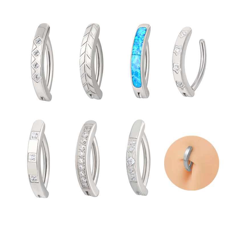 Titanium CNC Set CZ Paved Belly Button Navel Ring