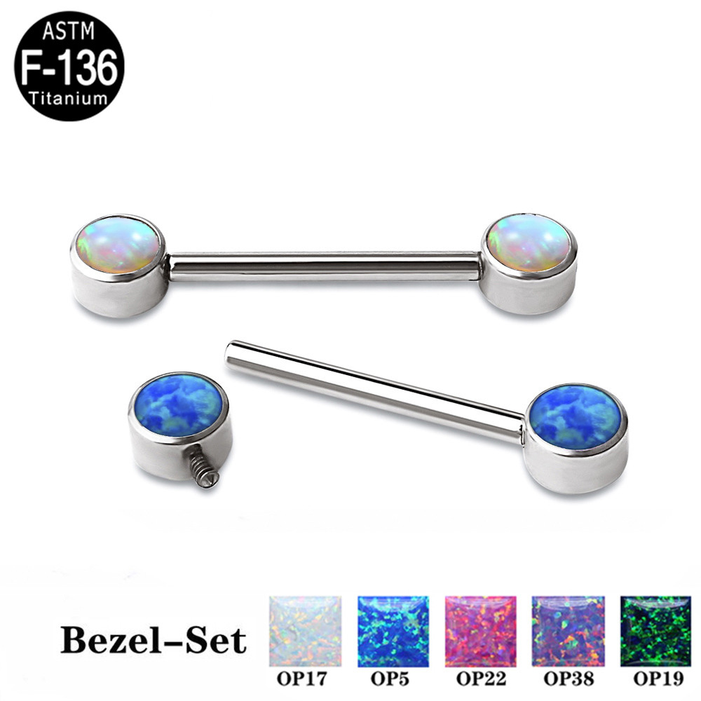 Internally Threaded Bezel Set Opal Stoen Nipple