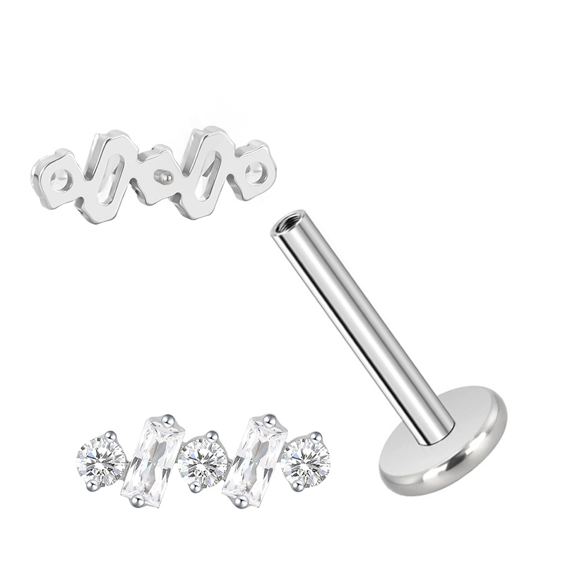 Titanium 2 Baguette CZ and 3 CZ Internally Threaded Top
