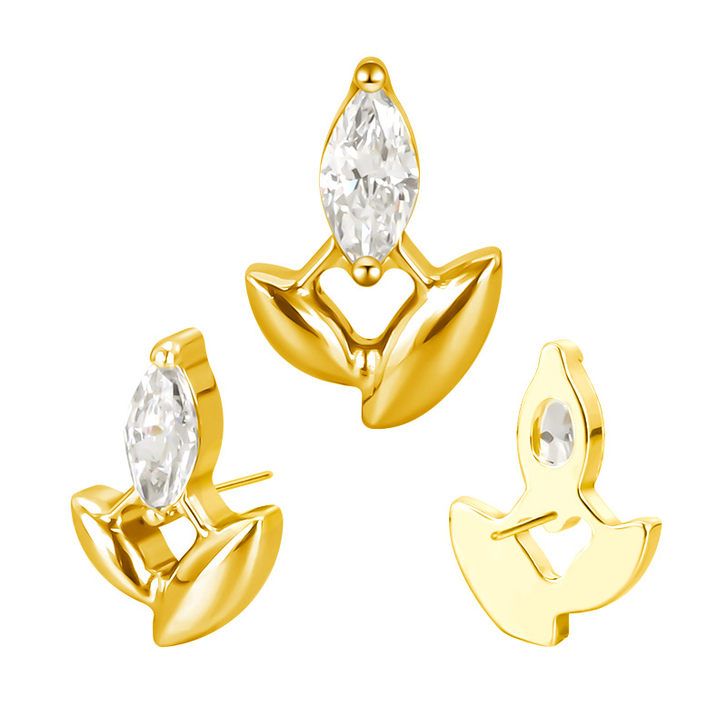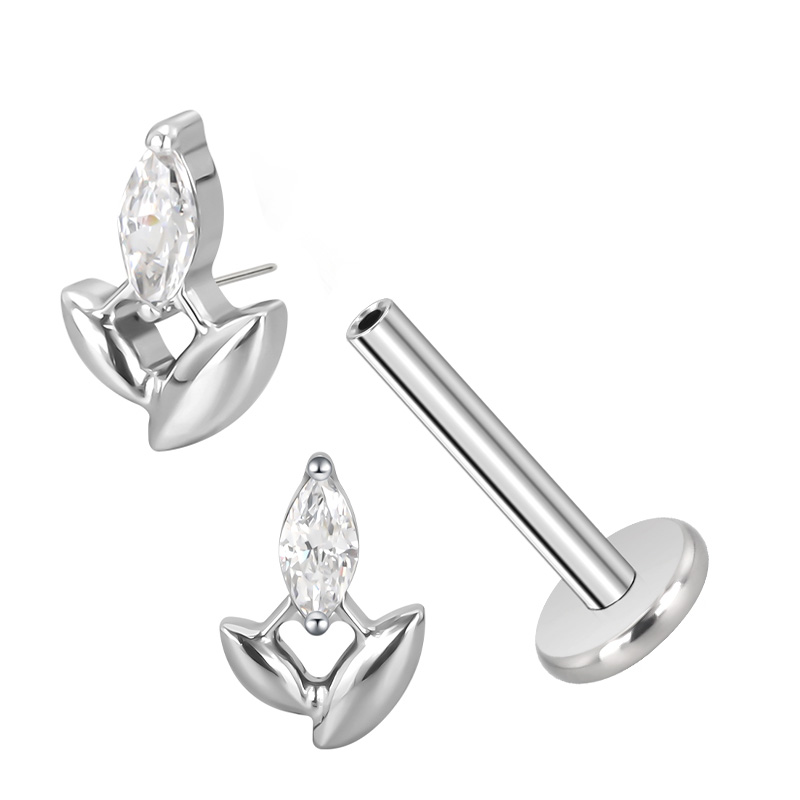 Titanium Push In Flower With Marquise CZ Center Threadless Top