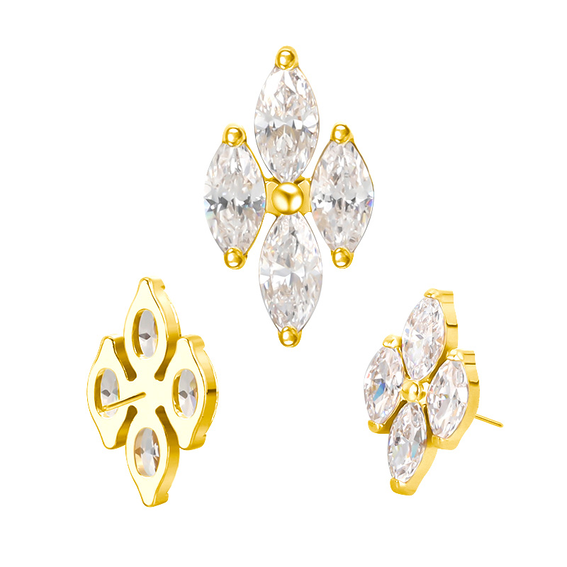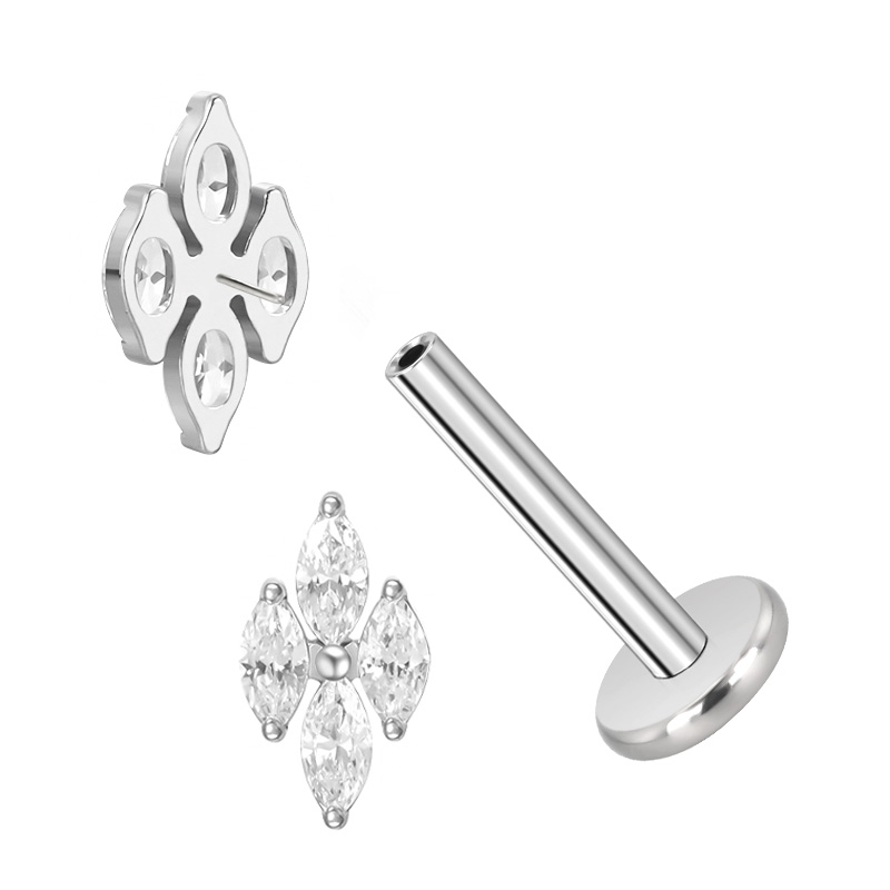 Titanium Push In 4 Marquise CZ Threadless Top