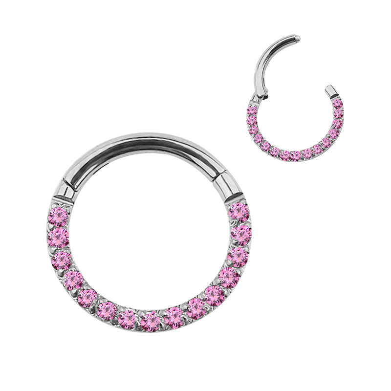 ASTM F-136 Hinged Segment Hoop With CZ Pave