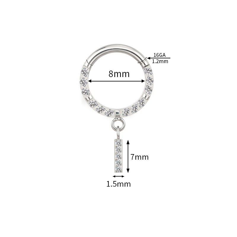 Titanium CZ Paved Face Segment Ring With 5 CZ Lined Straight Bar Dangle