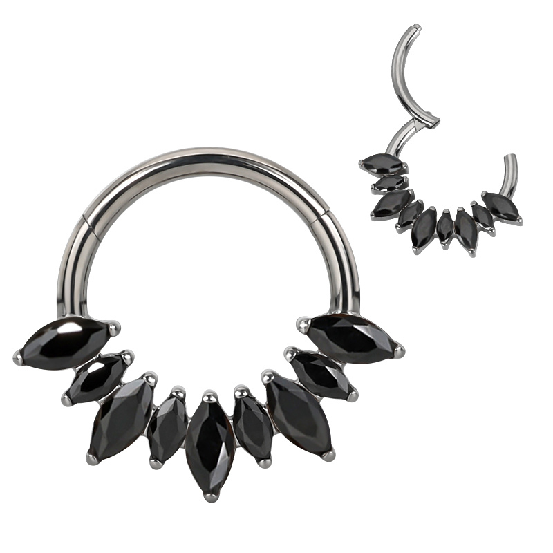 Titanium Hinged Segment Hoop Ring With 9 Facing Bezel Set Marquaise CZ