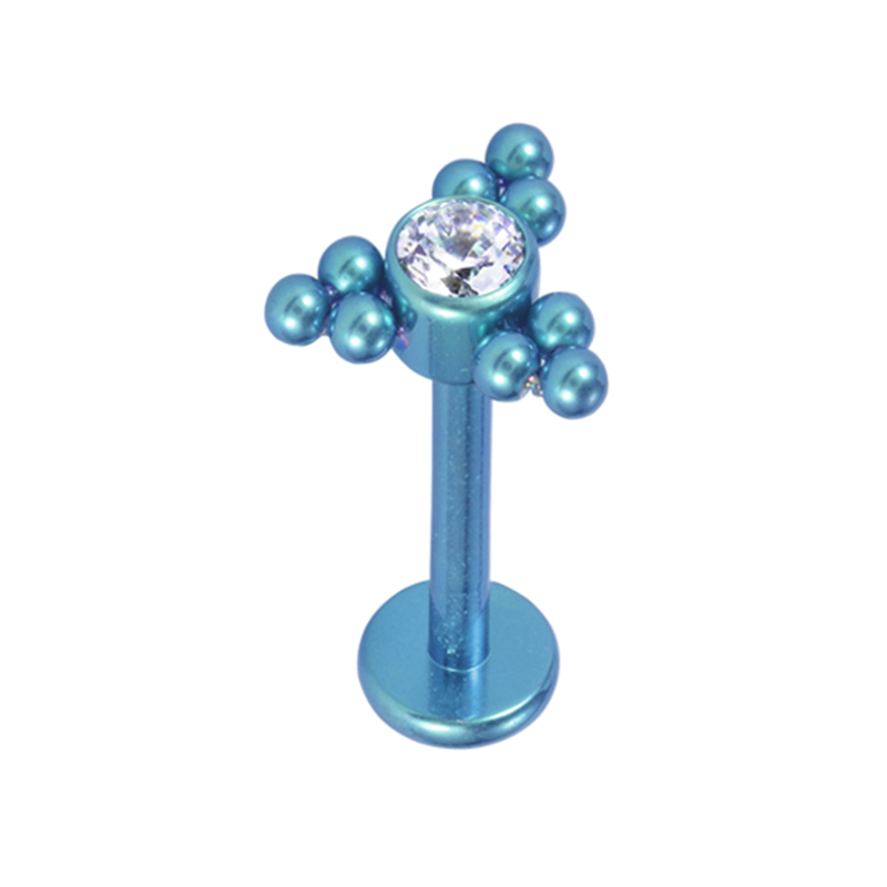 Internally Anodized Threaded 3 Tri-bead Clusters with Bezel CZ Gem Top