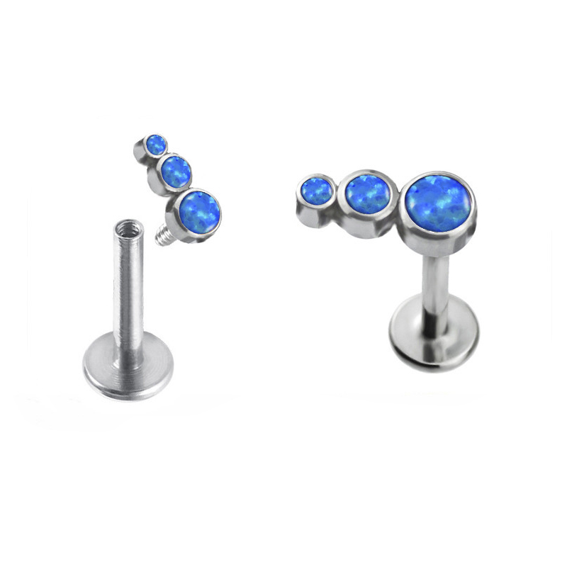 Internally Threaded Bezel Set 3-CZ Stone Clearuster Top Labret
