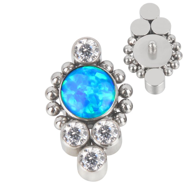 ASTM F136 Titanium 5 Clear CZ and Ball Clusters Surrounding Top Labret