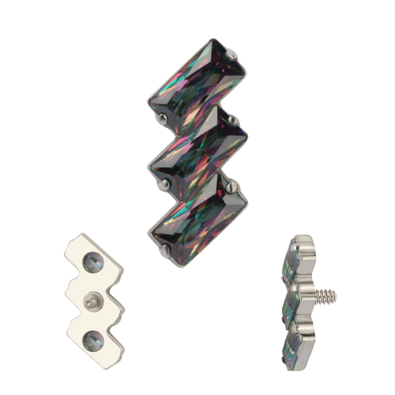 Titanium Internally Thread 3 Bezel Set Rectangles CZ Top