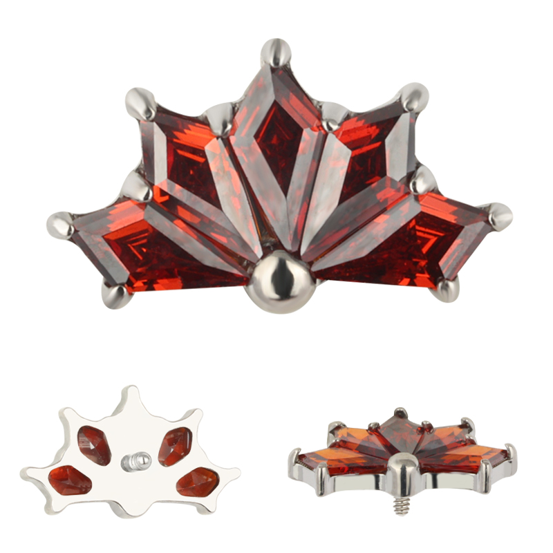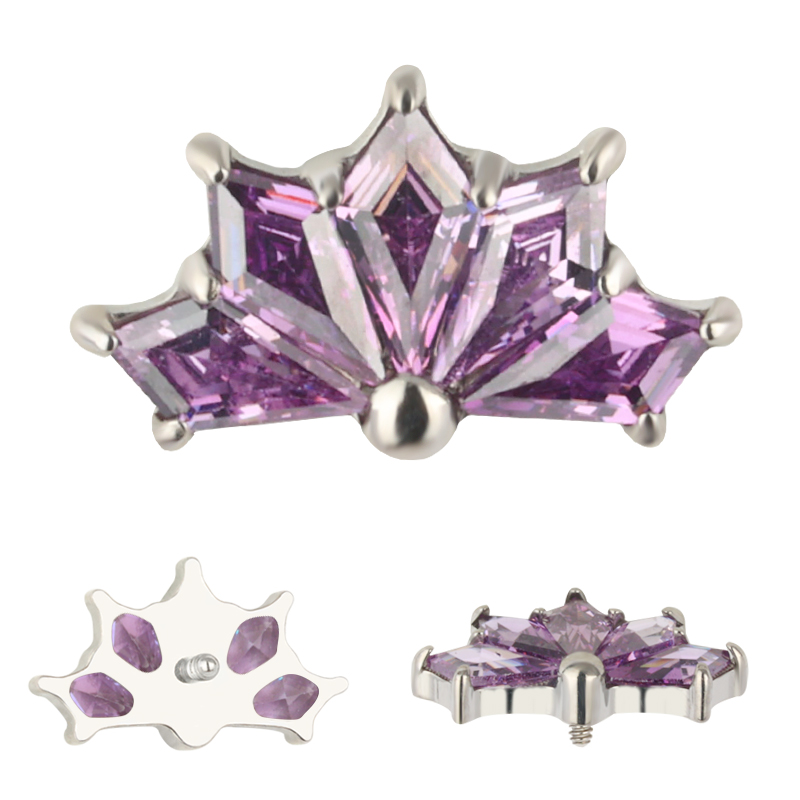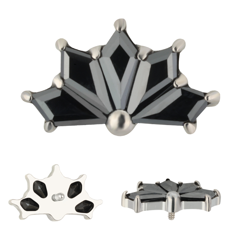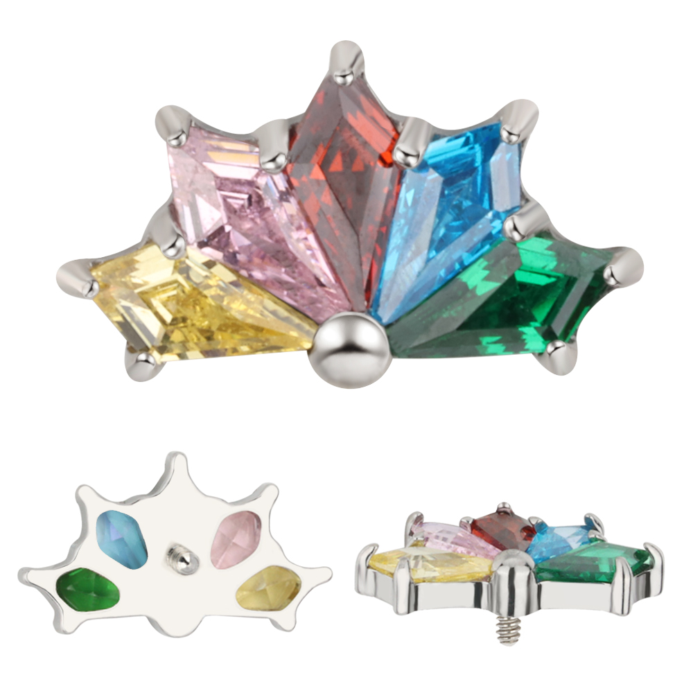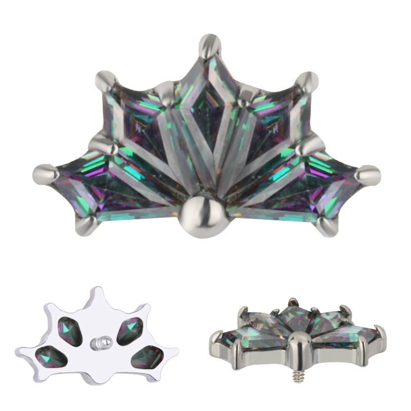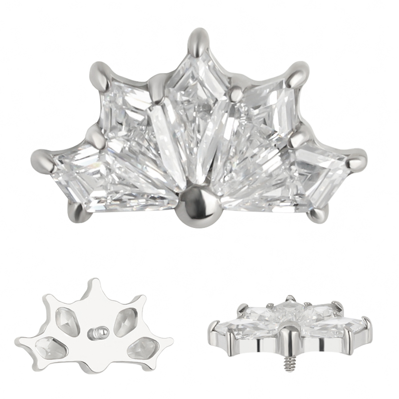 Titanium CNC 5 Kite Shape Zircon Prong Set Internally Threaded Top
