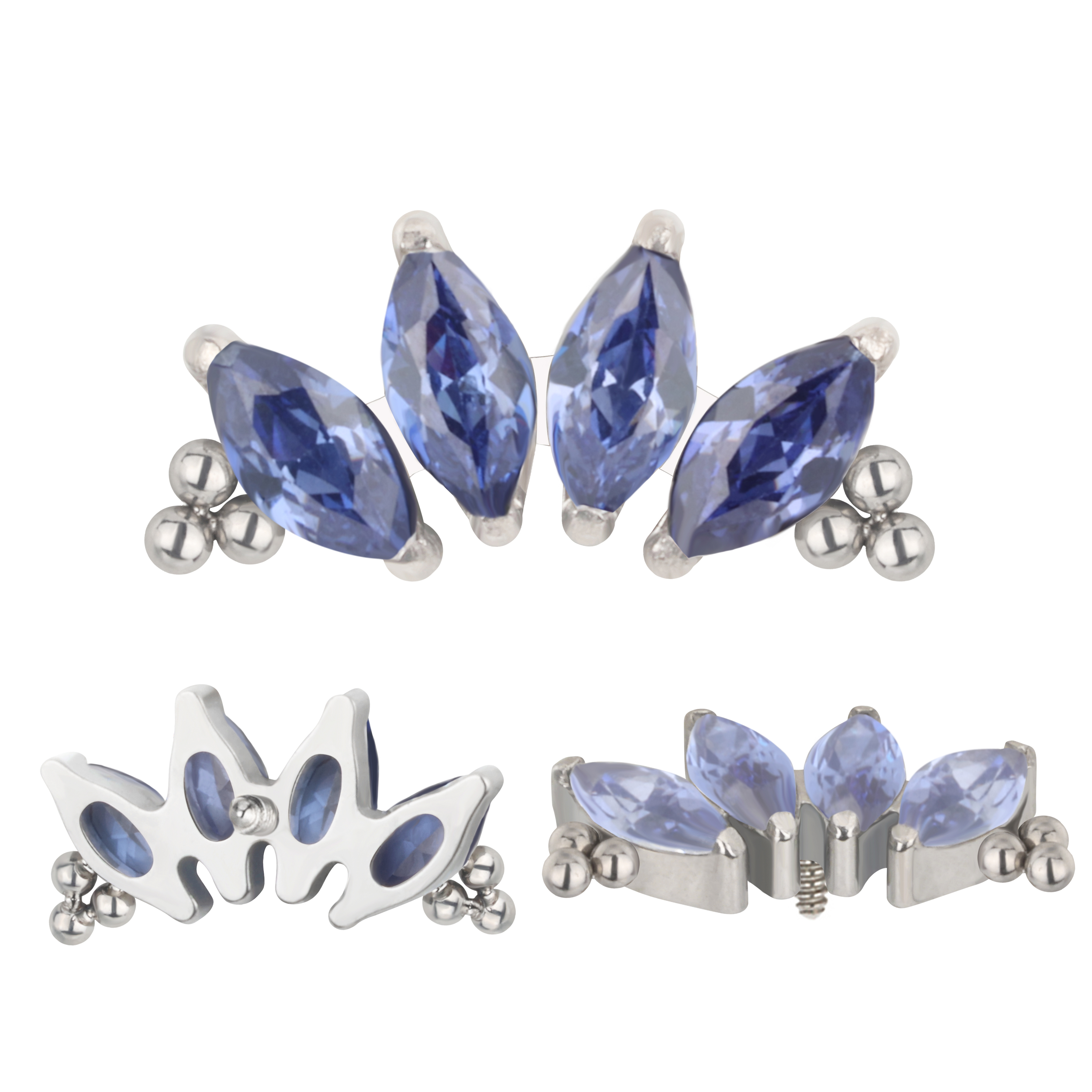 Titanium 4 Prong Set Marquise CZ With Tri-bead Cluster Internally Threaded Top