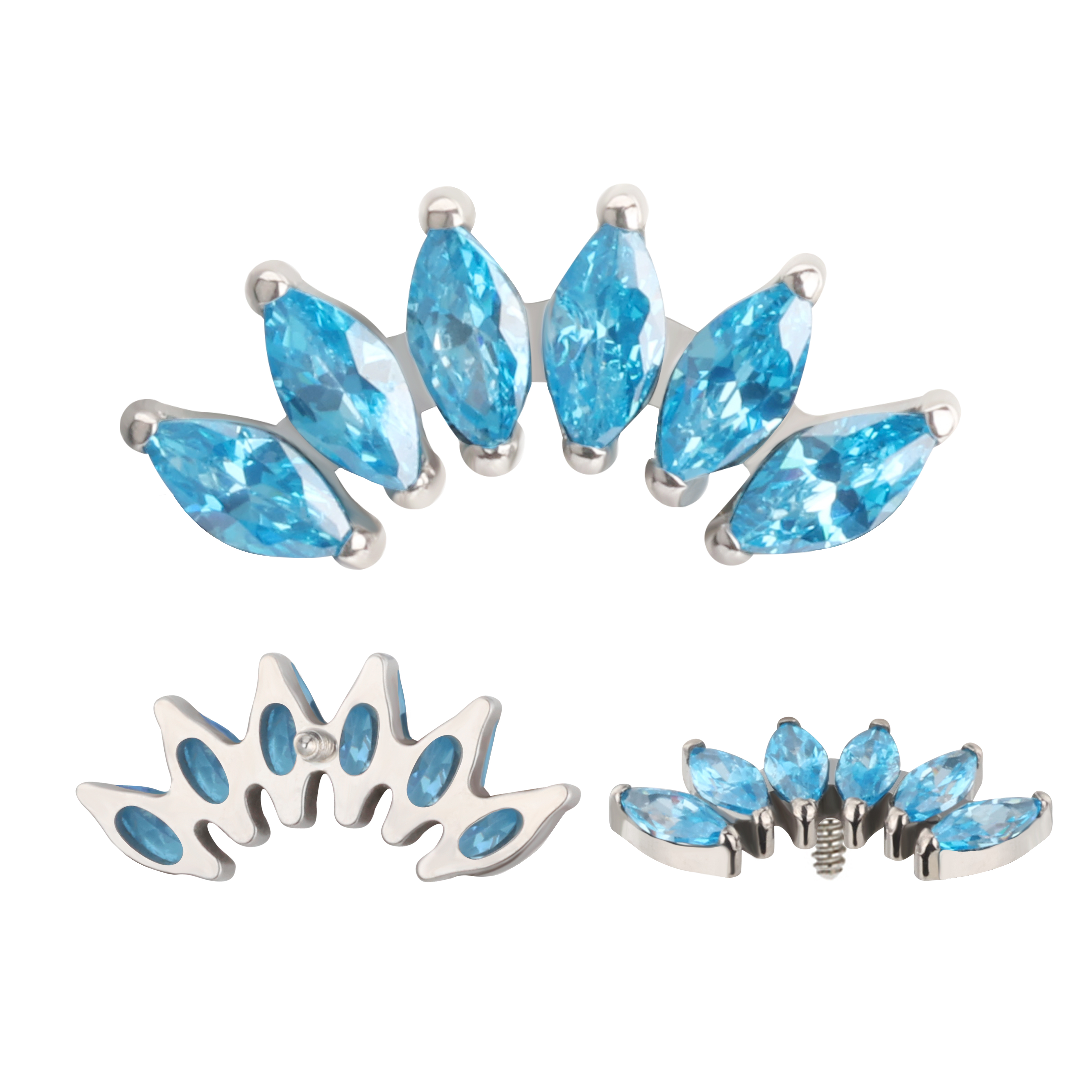 Titanium 6 Prong Set Marquise CZ Internally Threaded Top