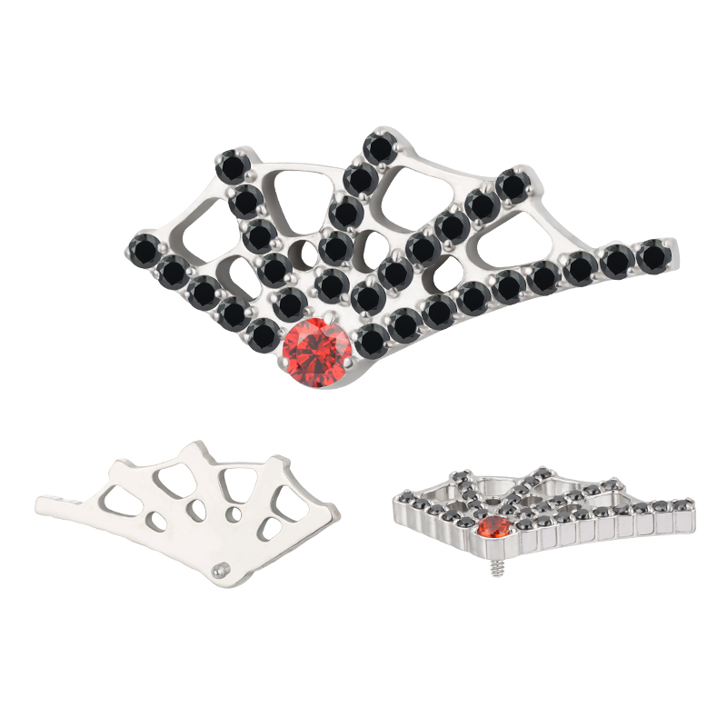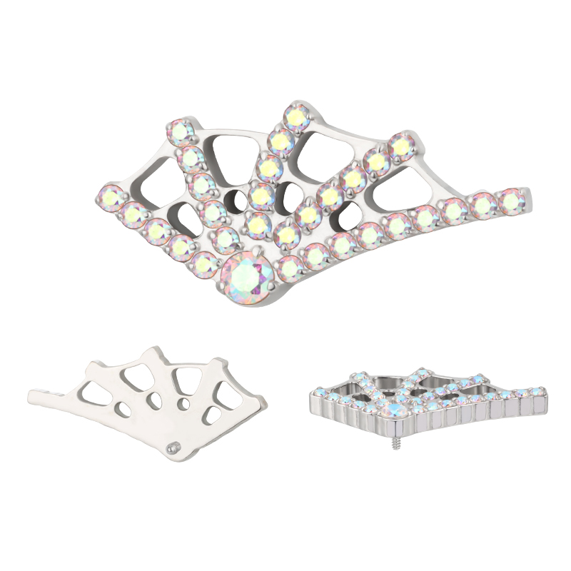 Titanium CNC Set Moon With CZ Center Internally Threaded Top