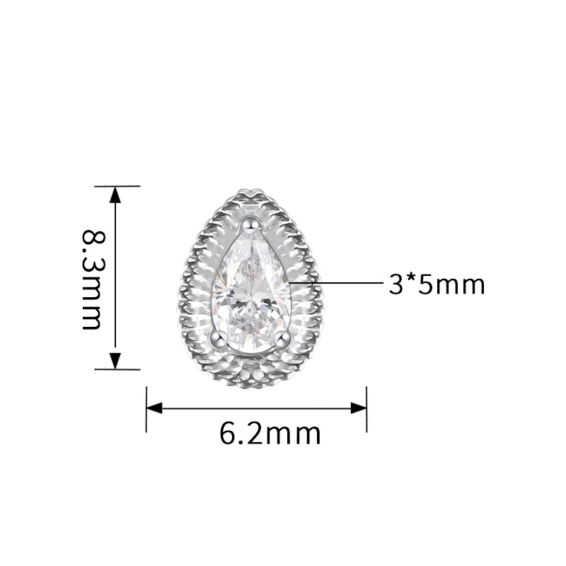 Titanium Push In Pear CZ Center And Crimped Edge Threadless Top