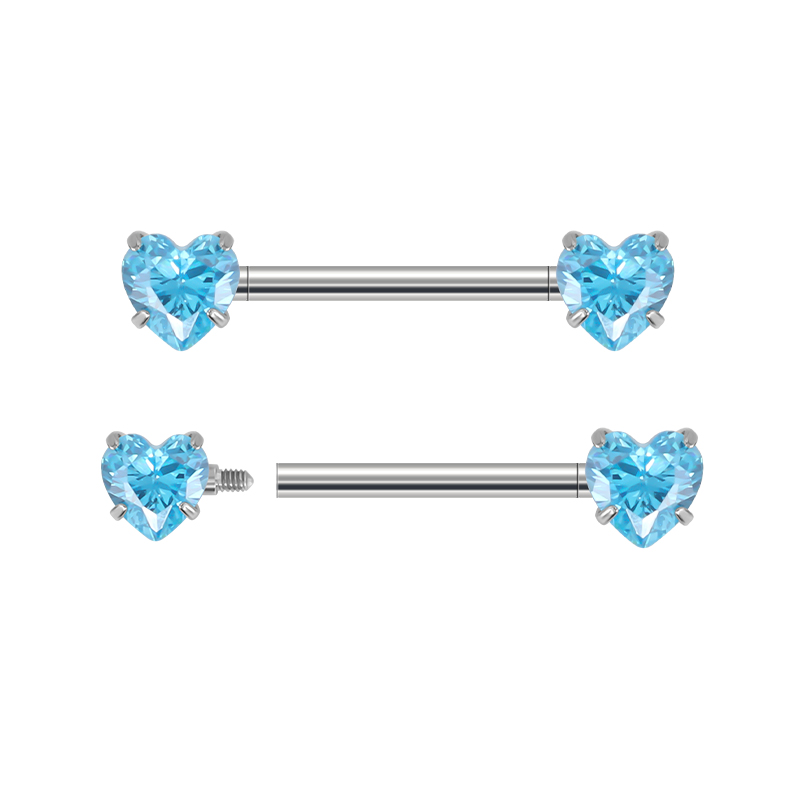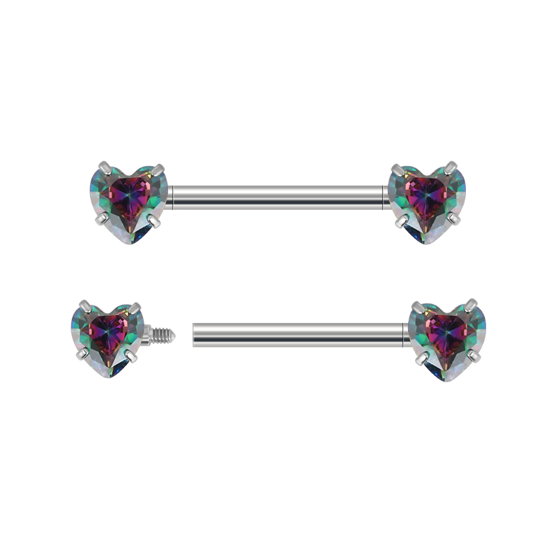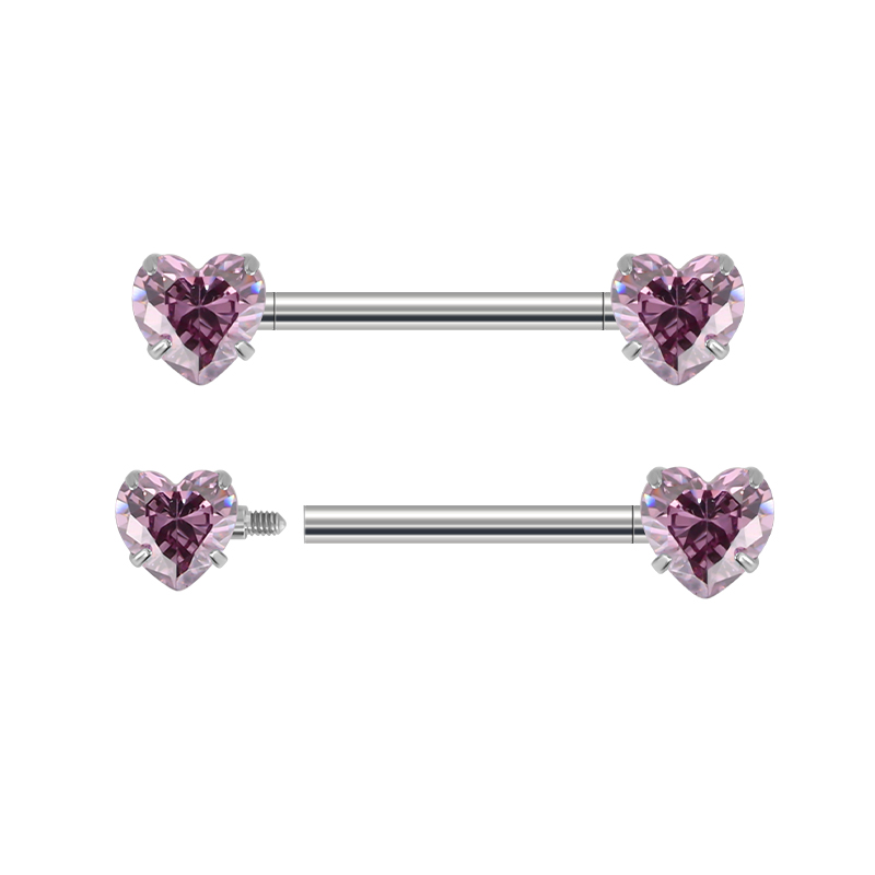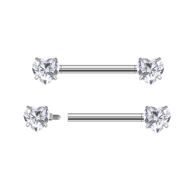 Titanium Prong Set Heart CZ Barbell,Nipple Ring