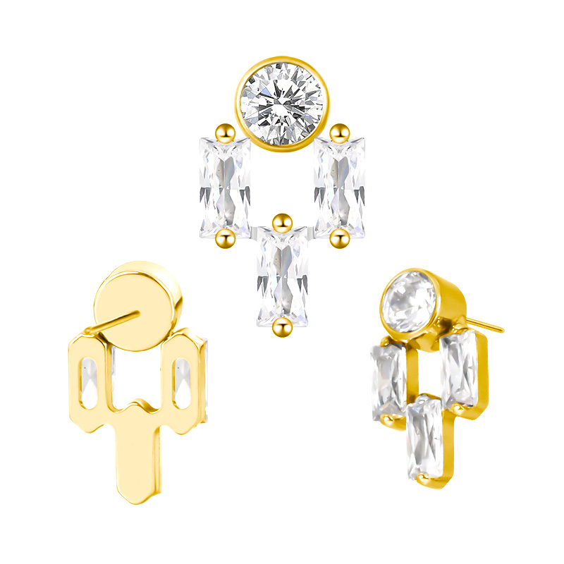 Titanium Push In 3 Baguette CZ With Round CZ Center Threadless Top