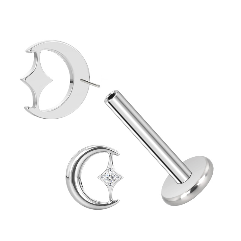 Titanium Push In Moon With CZ Center Threadless Top