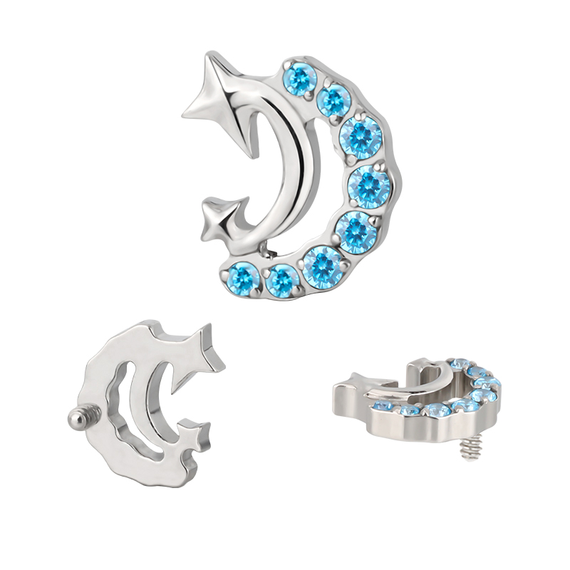 Titanium CZ Paved Star Trail Internally Threaded Top