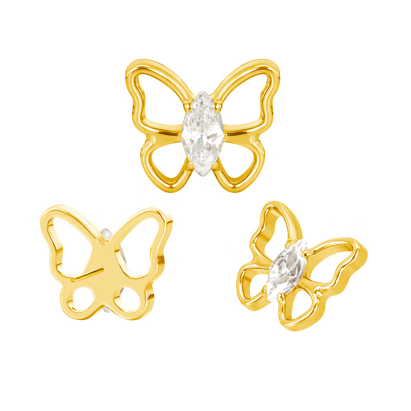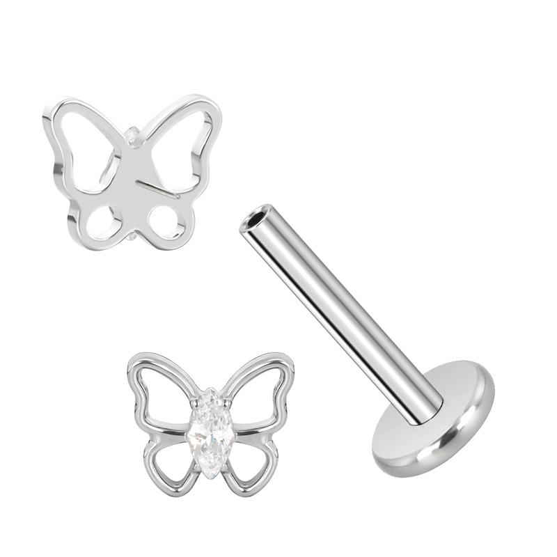 Titanium Push In Butterfly With Marquise CZ Center Threadless Top