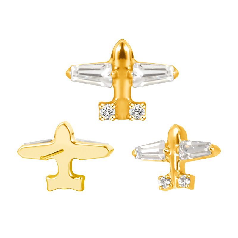 Titanium Push In CZ Airplane Threadless Top